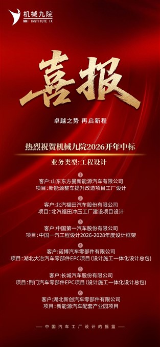 新春启新程,开局即冲刺!新年伊始,营销战线捷报频传,机械九院成功中标工程设计、涂装设备总承包、总装设备总承包等领域十余个项目。机械九院充分发挥自身优势,以时不我待的信念积极深挖潜能拓展市场,在激烈的市场竞争中...