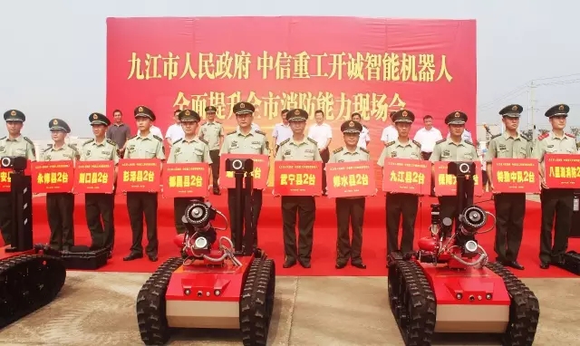 此次现场会为江苏九江各县区消防部门装配的37台防爆消防灭火侦察机器人,就是从中信重工共青城基地生产装配的首批消防机器人投入使用。