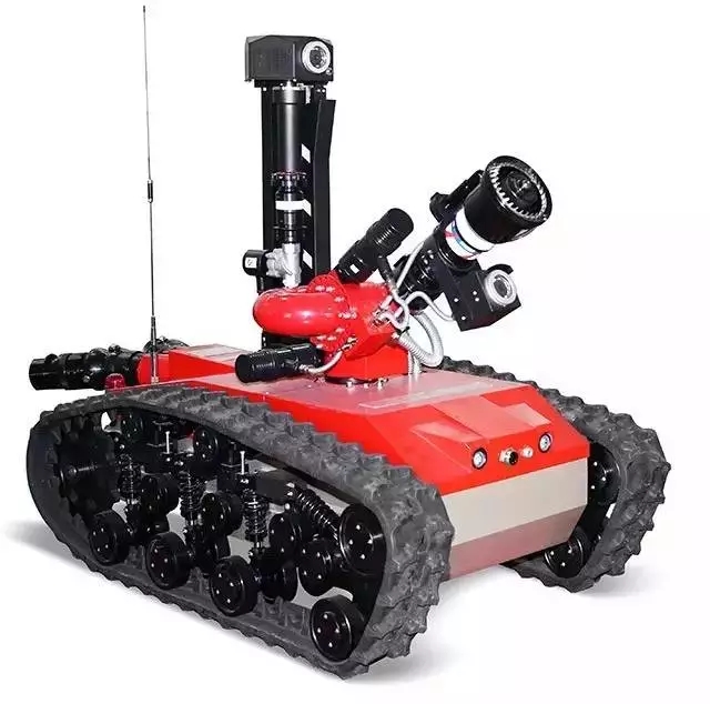 防爆消防灭火侦察机器人由机器人本体、消防炮和控制箱组成。主要用于各领域火灾扑救、侦察,尤其适用于石化、燃气等易爆环境。