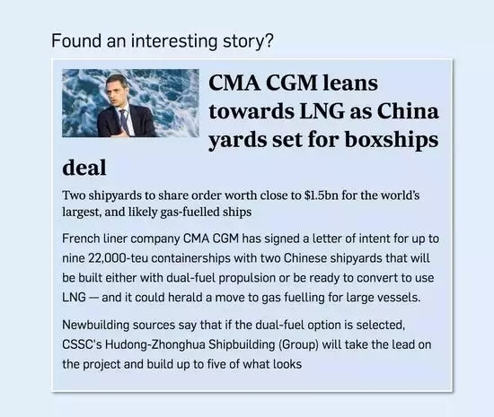 韩国现代重工业公司船舶营业本部的余容华常务甚至曾在8月1日举行的业绩介绍会上自信地表示,“我公司以往(2015年)曾单独与法国海运公司谈判,拿下大型集装箱船订单,双方之间保持着良好关系,相信这次一定可以拿到订单”。