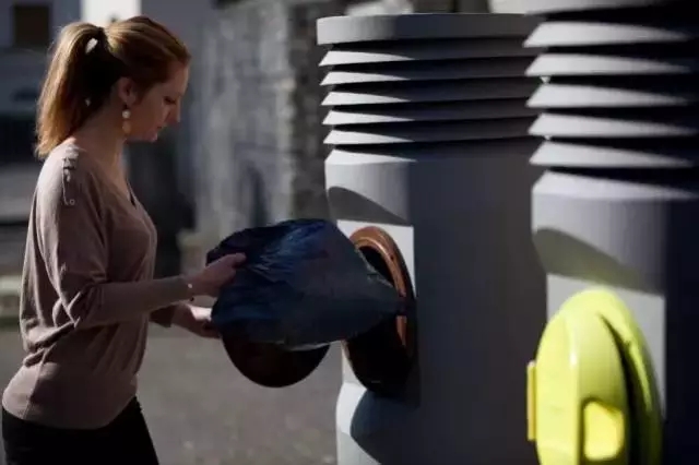 威立雅与当地政府签署服务协议,引进了生活垃圾真空气力收集系统。这些长得像邮筒一样的圆柱子,会“咻”地一下把你手中的垃圾吸走。地下的管道与垃圾中转站相连,那里的终端离心机会定时开动,产生巨大的高速气流并把垃圾“吸”到垃圾中转箱内。整个过程完全密封,很好地减少了四处散落的垃圾及和可能产生的异味。