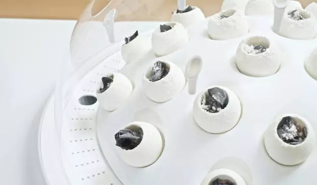 把消毒后的塑料放入球型培养皿,滴入稀释的菌丝后,真菌就会神奇地慢慢消耗塑料,最后长成毛茸茸的蘑菇!而这种蘑菇是完全可食用的,甚至可以配上不同口味的食谱。看起来居然很好吃的样子……