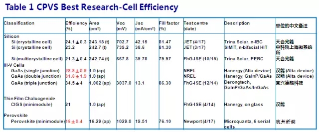 太阳电池中国最高效率表
