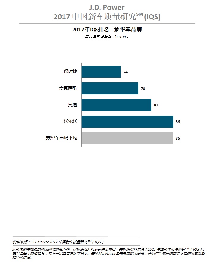 J.D. Power 2017中国新车质量研究排名—豪华车市场