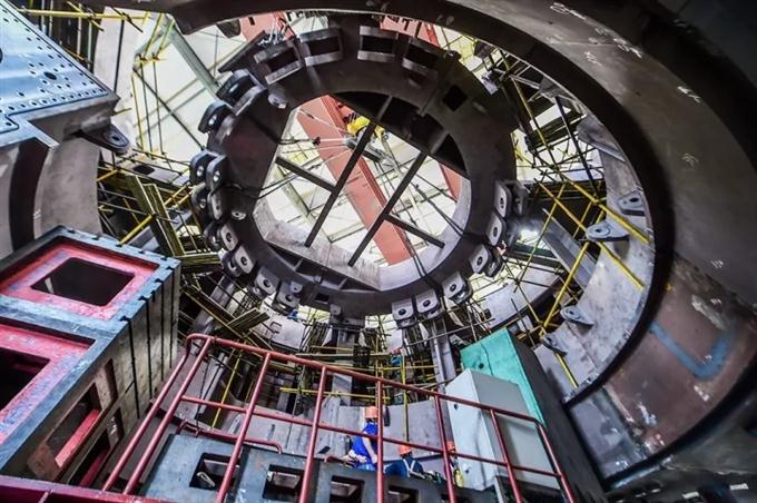 这是盾构机在中信重工生产装配时的情形