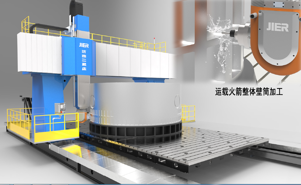 济南二机床超大型五轴龙门加工中心运载火箭整体壁筒模拟加工图