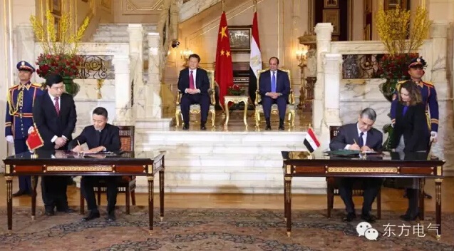 值此中埃建交60周年,国家主席习近平访问埃及之际,2016年1月21日在习近平主席和埃及总统塞西的共同见证下,东方电气股份有限公司签署埃及汉拉维恩HAMRAWEIN超超临界清洁燃煤电厂一期3台660MW机组EPC总承包协议。同时中国工商银行同埃及电力控股公司签署了该项目的融资贷款框架协议。