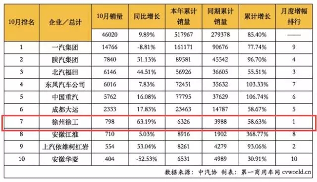 原标题为:《厉害了!徐工重卡十月杀入行业销量前七,增速行业第一!》