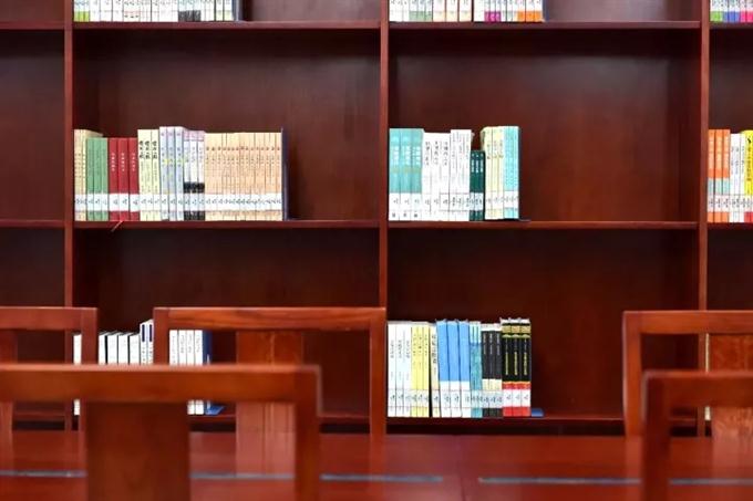 红木书柜、桌椅配上中国传统文学,古色古香、韵味十足