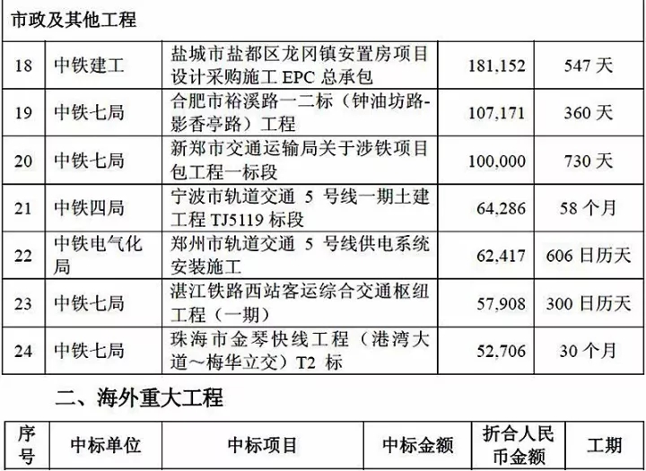 日前,中国中铁发布公告(临2017-045)。近期,公司中标多个重大工程,合计金额约413.2亿元人民币,约占本公司中国会计准则下2016年营业收入的6.46%。