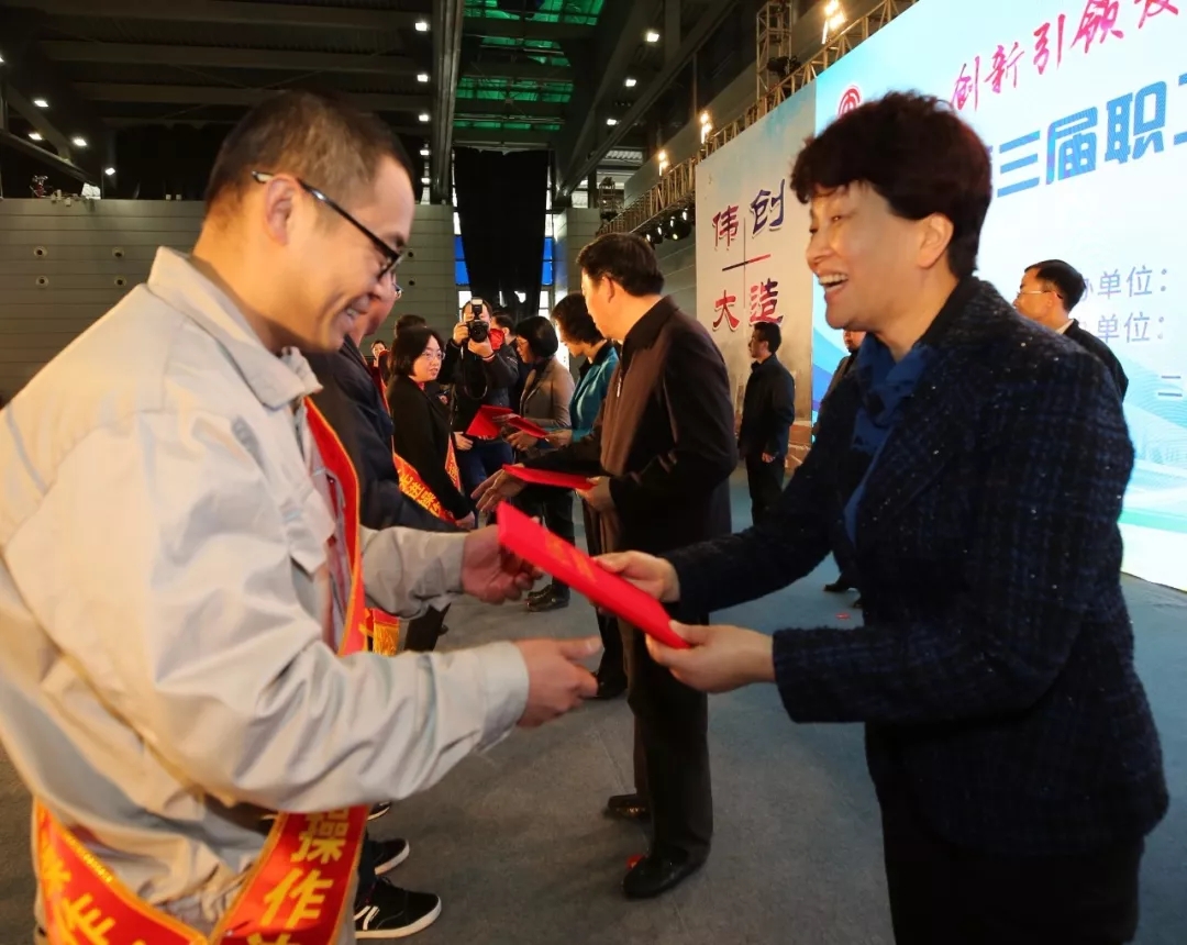 12月18日至22日,无锡市第三届职工创新创优成果展示周在无锡太湖国际博览中心举行。咱们发动机事业部的流量明星们在这一周惊艳亮相。在开幕上,顾健作为唯一的一位劳模先进上台发言;装配车间值班长程天庆摘得市职工“十大科技创新成果奖”的桂冠;重机部设备调整工杨寒冰获得市职工“十大先进操作法”第一发明人称号,赚足了人气和流量。