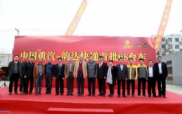 2016年3月24,中国重汽韵达快递首批68台车在上海青浦韵达速递上海分拨中心交付。韵达还与中国重汽定下100台HOWO T7H及100台汕德卡C7H牵引车订单,韵达只要对这批车支付一定单公里服务费用,中国重汽承担除易耗品以外的120万公里车辆全生命周期保养维修全部服务,让韵达买国产车也享受类似于进口车的服务,国产车维修不再是无底洞。