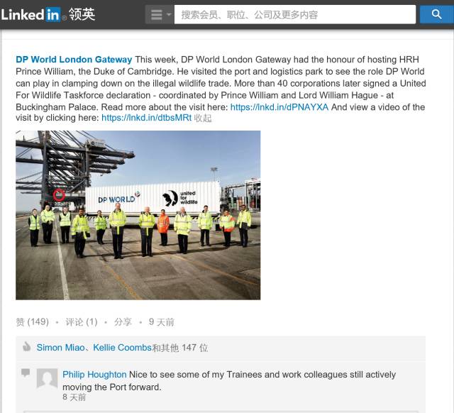 这不, 近日在DP WORLD 伦敦口岸(London Gateway) 的社交网站上报道了一则英国王室威廉王子访问该码头和物流园区的新闻。