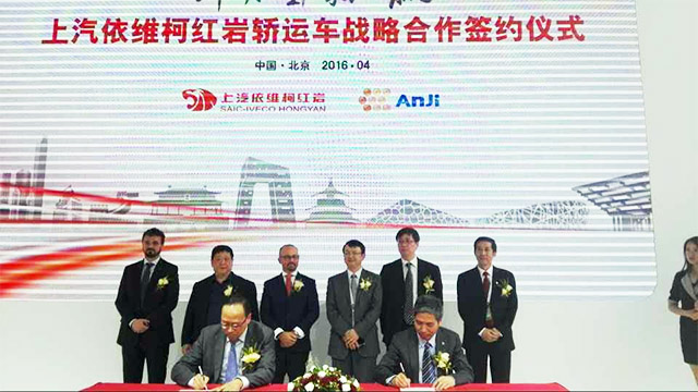 上汽红岩总经理杨汉琳代表企业与安吉汽车物流有限公司副总经理忻坚敏、重庆长安民生物流股份有限公司副总经理陈治刚分别签署了战略合作协议。2016年,安吉汽车物流、长安民生物流预计将分别采购红岩杰狮轿运车1000台。