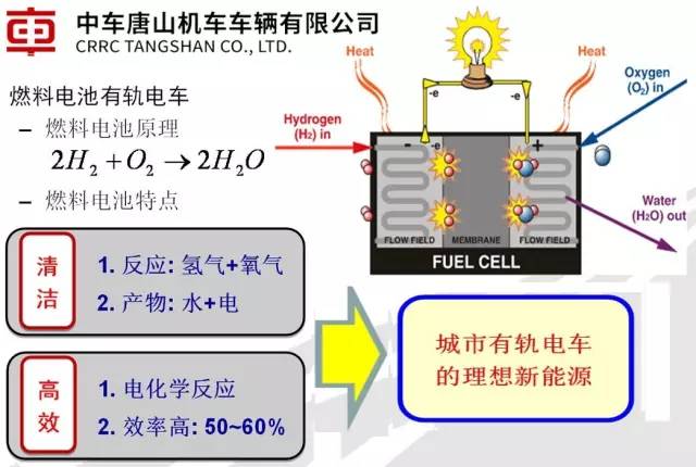 (2)燃料电池通过电化学反应直接将燃料的化学能转化为电能,中间不经过燃烧过程,电能转换效率可以达到40~50%,比内燃机的能量转换效率高出10个百分点。