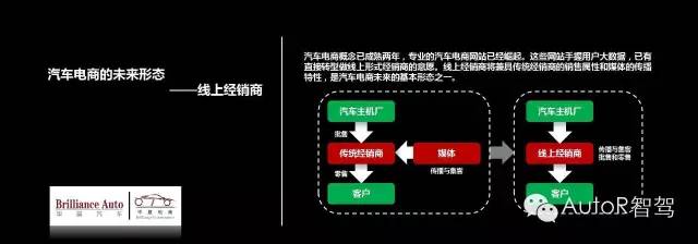 在新的形态中就不一样了,主机厂和线上经销商,也就是电商,他们之间存在汽车批售关系,也存在传播与集客的作用,最后零售给C端。