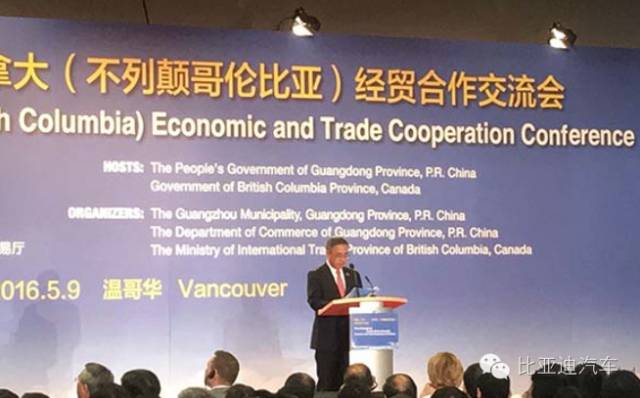 胡春华在发言中提到两家企业,称比亚迪和中广核作为广东企业的杰出代表在加拿大取得了成功的发展