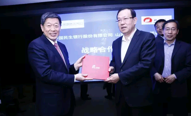 随后,在张士平、郑万春和中国民生银行济南分行行长张春方,及民生银行各部门领导的见证下,魏桥创业集团董事、财务部部长赵素文与中国民生银行行长助理石杰签署了战略合作协议——中国民生银行拟给予魏桥创业160亿元资金支持。签约仪式结束后,银企双方互赠纪念品并合影留念。