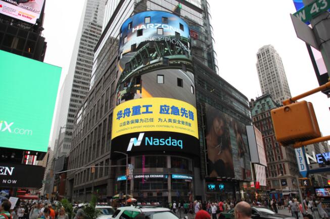 华舟重工代表中国民族品牌形象亮相时代广场,视频短片时长5秒,展播时间一周,每天25次,颇受关注。
