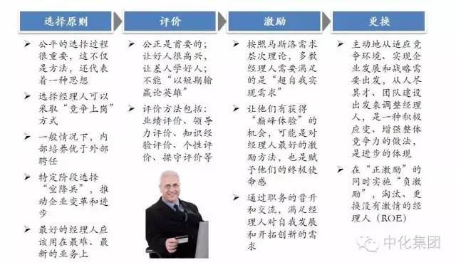 对于一个崭新的股权和管理权分离的企业,最核心的第一步应该是选经理人。用科学的方法选经理人最重要,要有公开与可行的标准,所选的经理人一定是能够带领公司进步的人。将来提拔谁,必须清楚地表明为什么提拔他,对大家要有很清楚的导向性,而不是下达一个文件就行了。