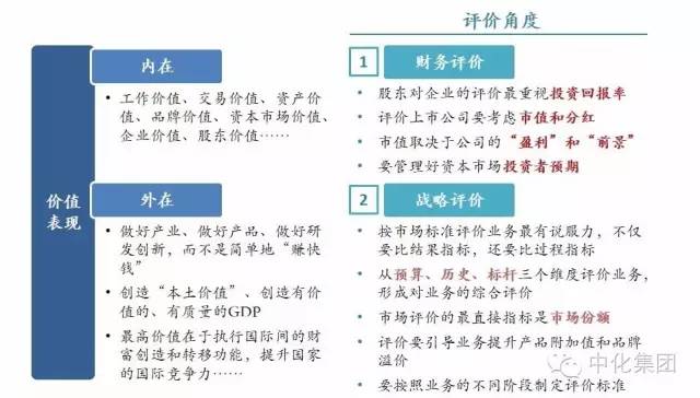 选人,组建队伍,制定战略,形成竞争力,最终做得好不好,要有一个评价。评价的过程就是价值创造。比如对盈利的评价,对股东价值评价,对员工价值的评价,客户的评价,公众的评价,政府的评价,银行的评价,客户供应商的评价,传媒的评价等等,广泛的评价体系和不同的角度使企业面对巨大的、多方面的压力,面临不断更换经理的风险。