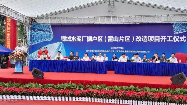 6月28日,鄂城水泥厂棚户区(雷山片区)改造项目工程举办开工典礼。武钢副总经理傅连春及武钢总经理助理赵昌旭,鄂州市副市长李忠禄等参加开工典礼。