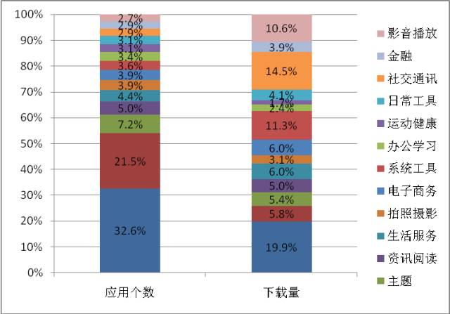 (一)热点移动应用聚焦分布于系统工具类、影音播放类、社交通讯类三大领域