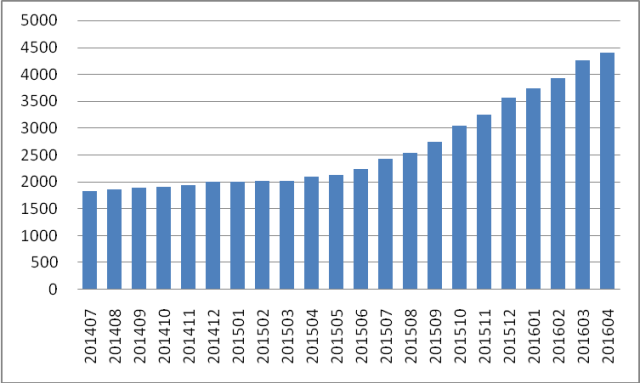 工业头条获悉,根据中国信息通信研究院移动互联网应用监测平台监测数据显示,2016年4月国内移动互联网市场运行呈以下态势:
