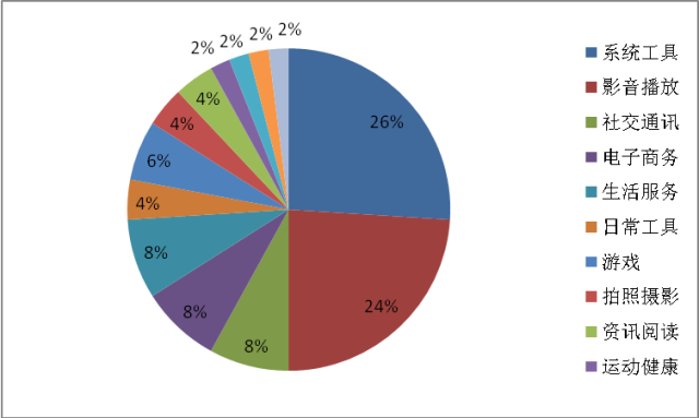 图-2 全体移动应用市场中的移动应用领域分布情况