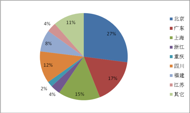从移动应用开发数量看,北广上川构成国内移动互联网应用研发创新方面第一梯队。我国企业开发团队发展出的移动应用中,北京、广东、上海、四川所属的移动应用数量占比均过整体的10%,合计占比高达70%,北京以27%的应用数量占比位居第一。