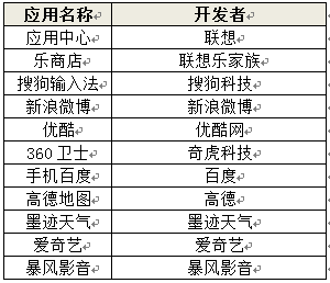 其中,排名居首的北京移动互联网应用产业领军企业众多,联想在其销量巨大的智能手机产品中,批量搭载发展自有应用中心与乐商店两款热点应用,其余TOP10应用均来自于传统互联网/软件企业。