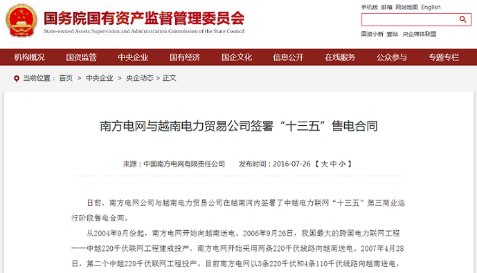 “十三五”我国将继续向越南送电75亿千瓦时,已有12年售电历史