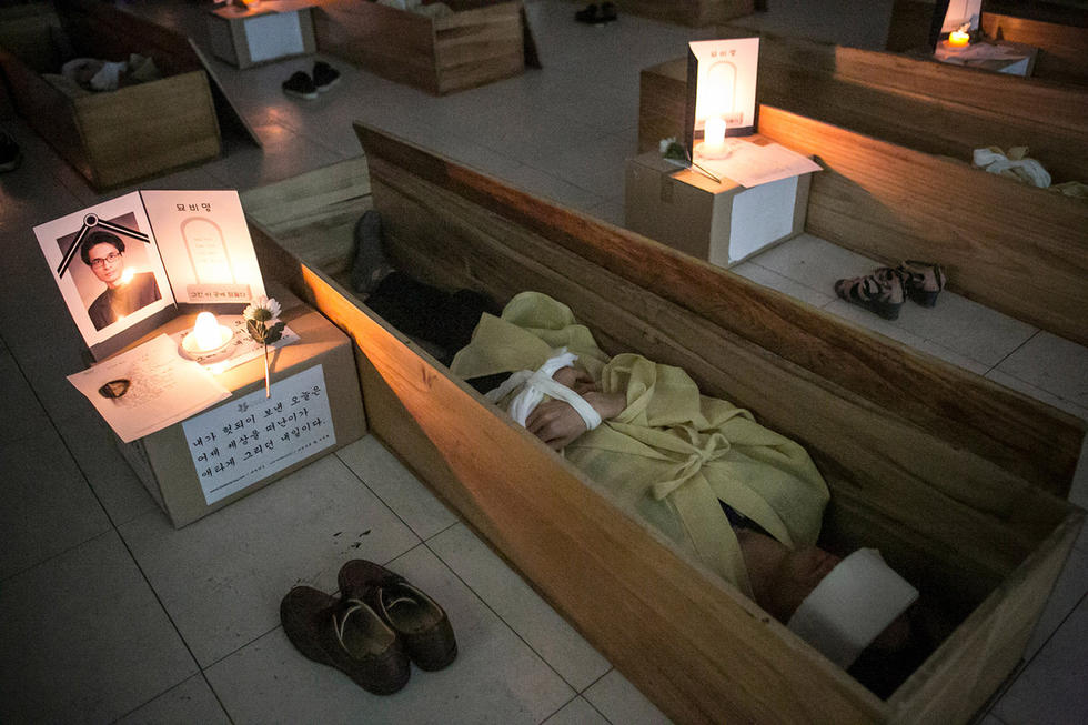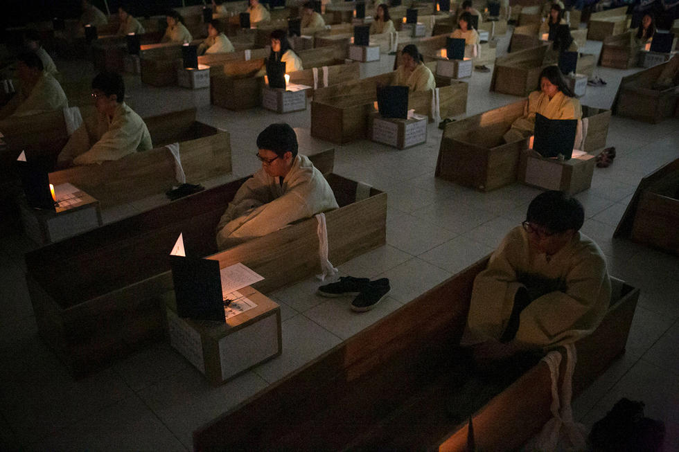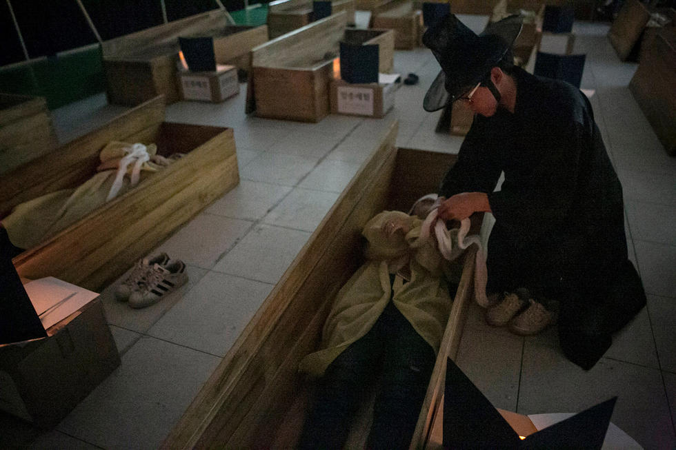 据英国《每日邮报》近日报道,近年来,韩国经济飞速增长,然而随之而来的是人们的生活压力和作出“轻生”的选择。在全球范围内,韩国自杀率一直居世界第二。为此,韩国政府推出“快乐死亡”的假死体验项目,从而告诉人们要珍惜自己的生命,不要选择自杀。
