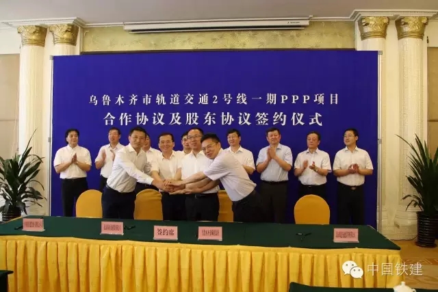 中国铁建总经济师孙公新、北京市基础设施投资有限公司总经理郝伟亚、北京市轨道交通建设管理有限公司总经理丁树奎分别代表联合体,同乌鲁木齐市政协副主席、市建委主任马伊磊签署合作协议。乌鲁木齐市城轨集团董事长孙礼超、中国铁建投资集团总经理王巍以及郝伟亚、丁树奎共同签署项目公司股东协议。