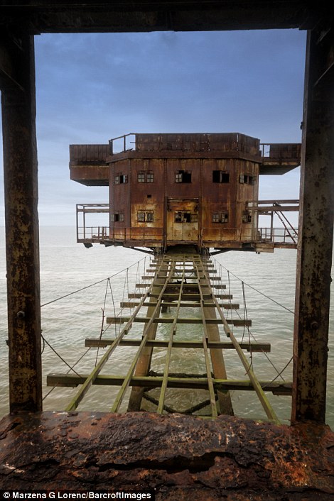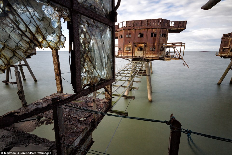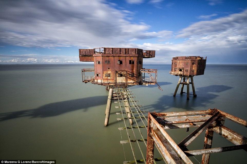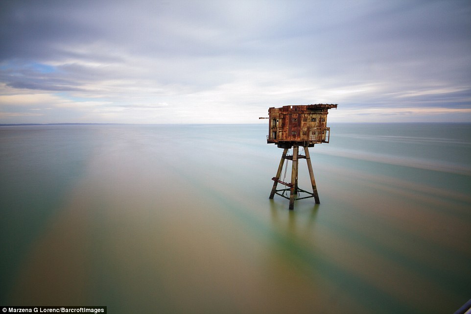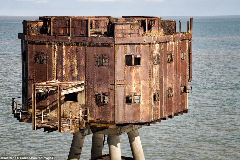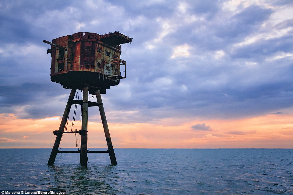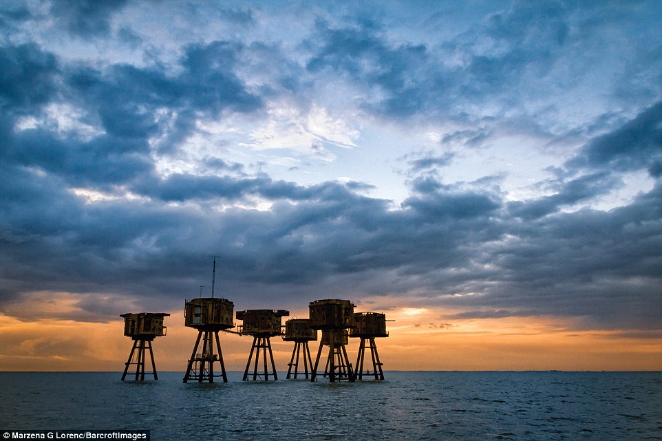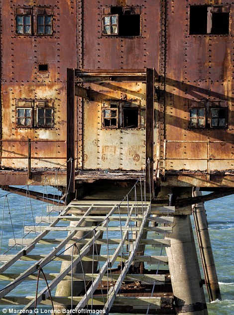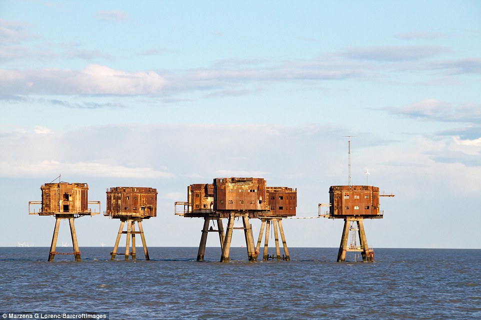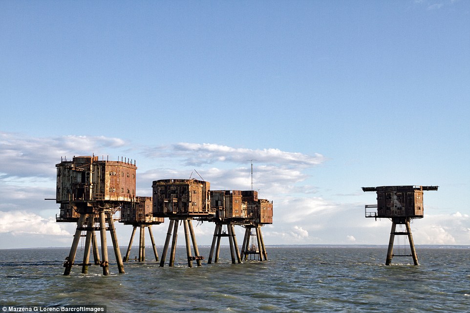 据英国《每日邮报》日前报道,1943年英国于泰晤士河口修建了多处海上炮台,用以在二战期间保护伦敦免受纳粹袭击。这些巨型的金属机枪塔曾经帮助枪手击落纳粹战机。而从1956年开始,就遭到废弃。最近,一名来自波兰的51岁的摄影师马扎娜·格莱茨尼斯卡·劳伦可(Marzena Grabczynska Lorenc)近日拍到了这些海上炮台的照片,尽管它们已经锈迹斑斑。