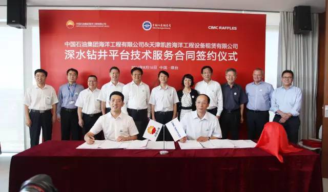 工业头条获悉,2016年8月16日,中国石油集团海洋工程有限公司(简称“中油海”)与烟台中集来福士海洋工程有限公司(简称“中集来福士”)在烟台签署了D901#超深水钻井平台技术服务合同。中国石油集团公司总经理助理王铁军、中油海总经理刘圣志、中集集团副总裁于亚、中集来福士总裁王建中等出席签约仪式。该平台交付后,将为中油海提供海上能源勘探服务。