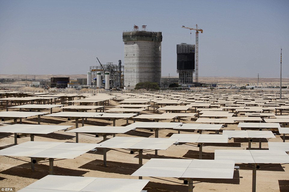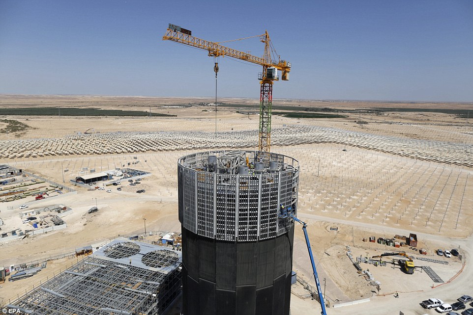 据英国《每日邮报》日前报道,以色列正在内盖夫沙漠(Negev)建立世界上最高的发电塔阿沙利姆塔(Ashalim),预计2017年完工。而现在,以色列已经在这个国家南部的沙漠上安置了5.5万面镜子,这是为了给阿沙利姆塔积聚热能,占地有400个足球场大小的面积。