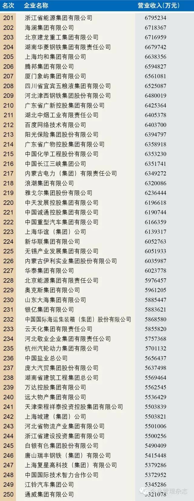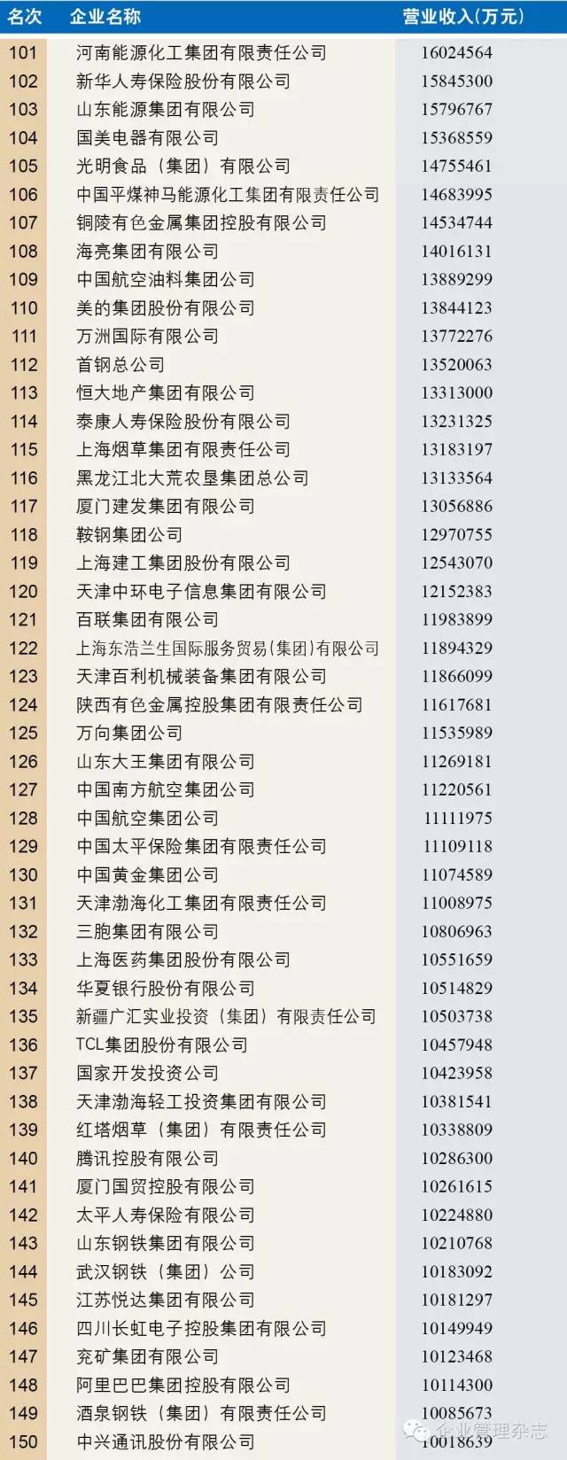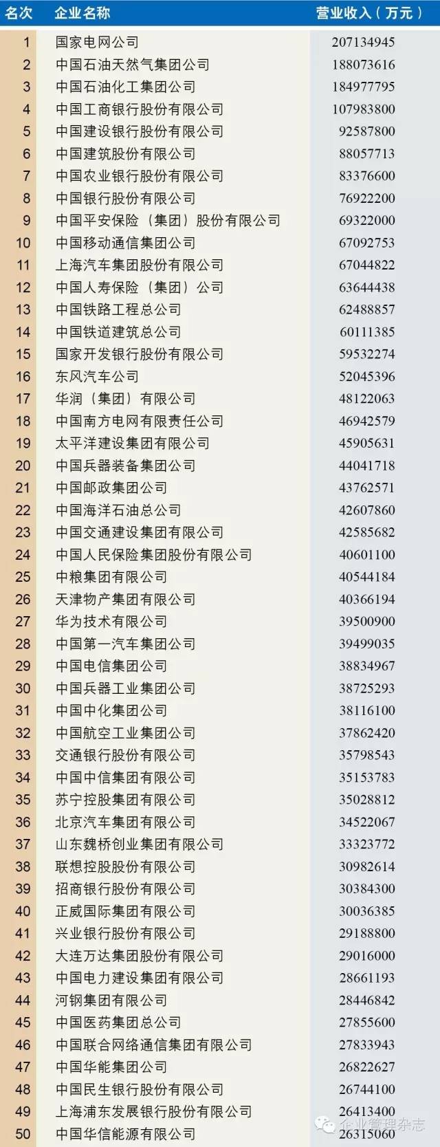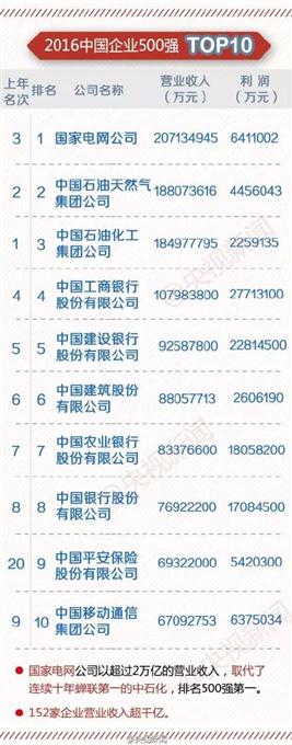 2016中国500强企业完整榜单!营收下降0.07%,首次出现负增长