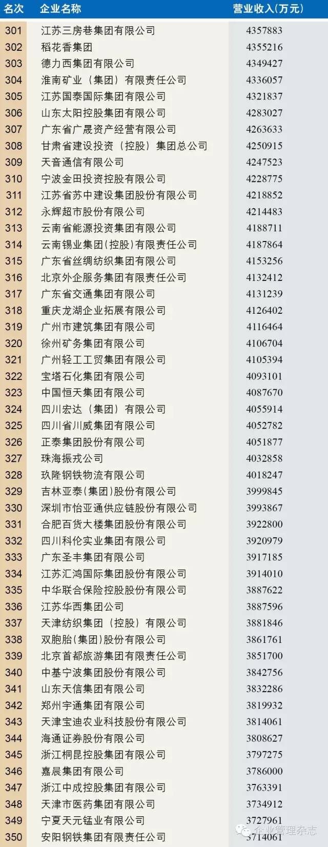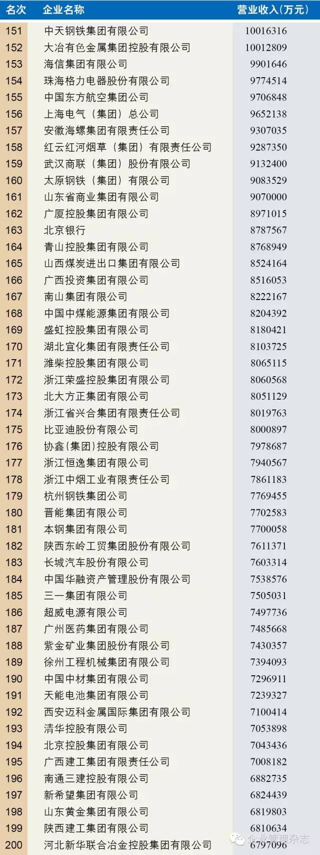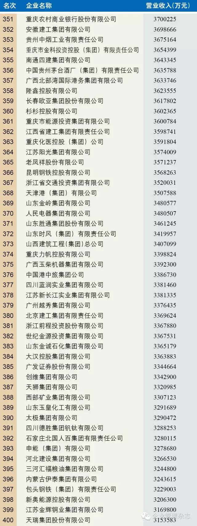2016中国500强企业完整榜单!营收下降0.07%,首次出现负增长