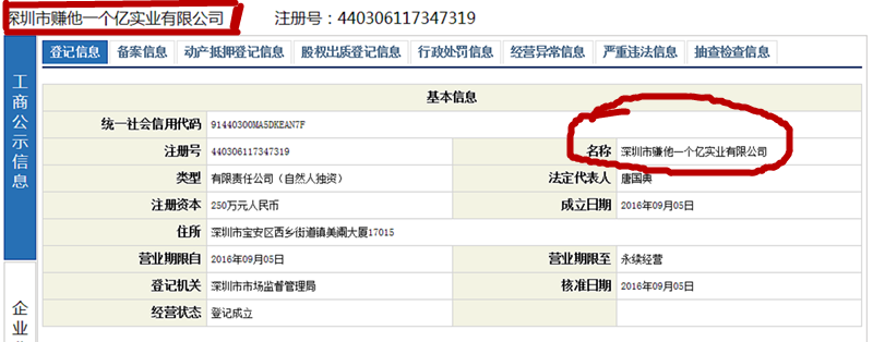 是的你没看错,这家公司的名字就叫“赚他一个亿”!
