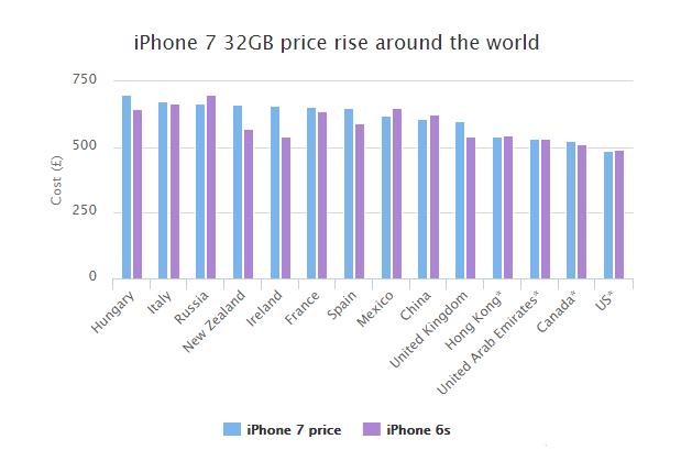 据英国《每日电讯报》近日报道,9月9日起iPhone 7已经开始了网上预订销售,预计将于9月16日开始各大零售店销售。而目前据统计,iPhone7在全球范围内售价最高的国家是匈牙利,大约为456058.64匈牙利福林(约为700英镑),这竟然比在美国的售价高出了整整44%。