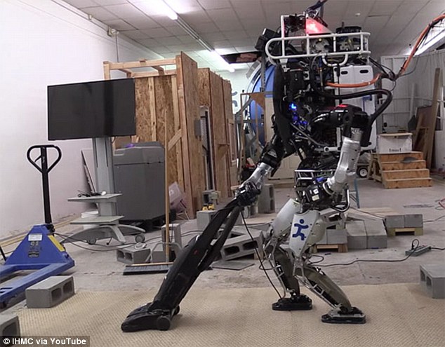 阿特拉斯机器人的“身高”为189厘米,重量达到150公斤。他具有28个水压操作关节和立体视觉,是迄今世界上研制的最先进机器人。他还能够完成一系列任务,其中包括使用吸尘器。