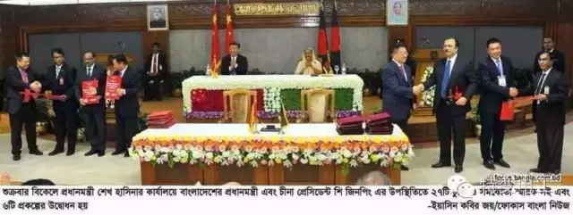 中国国家主席习近平与孟加拉国总理谢赫·哈西娜共同出席项目签约仪式