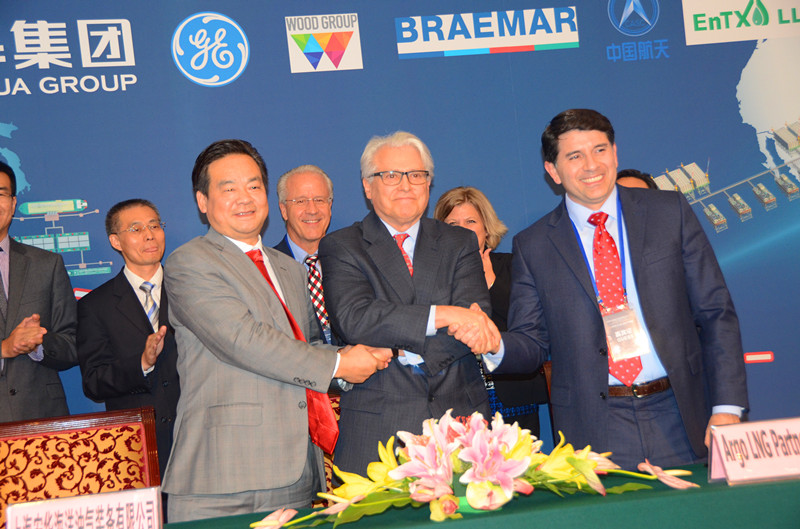 在峰会上,美国Argo能源公司与宏华集团签订了总值达18亿美元的首套平台式海上天然气液化工厂(PLNG)建造框架协议,从而正式掀开了中美天然气贸易的崭新篇章。据悉,首套PLNG包含4座生产平台、4座存储平台、1座生活平台和1座中心处理平台,以及可供3万立方米—26万立方米LNG运输船靠泊的码头,设计年总LNG加工能力高达360万吨,总LNG储存能力为24万立方米;首套PLNG将以EPC的模式在宏华集团的海洋厂房内进行建造——在经过模块化制造、安装、调试后,再利用“钢铁巨兽”宏海号整体吊运装船,然后运输至墨西哥湾进行安装运行,整个过程下来比传统方式更加高效可靠。