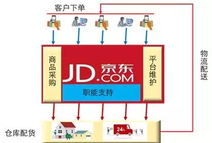 当我们使用京东服务的时候,京东与其它电商相比最大的优势是什么?快!“快”就是这个阶段让京东拉开竞争差距的核心能力。下图为京东电商的业务模式示意图,为了打造京东的核心竞争能力,您认为京东的股权应该重点激励哪些员工?
