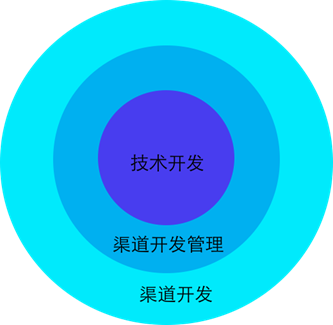 对于这样的小微企业,没有足够实力打造用友网络那样的全业务链,其核心能力聚焦于产品的研发上,其市场工作不是开发终端客户,而是开发具备专业实施能力的软件企业作为渠道。对于此企业,核心竞争能力不在于面向客户的前端,所以不需要像用友那样设计解决方案的咨询能力,而在于后端产品的技术研发能力。如下图所示: