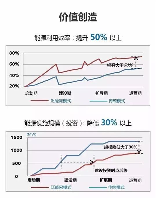 搭建了泛能网,再有很好的管理,我们的能源利用效率可以提高50%,这是非常了不起的效果。能源设施规模能够降低30%,也就是说我们的投资可以降低30%。我们的利益相关者,从用户到运营商,到投资方,到政府,都可以从中分享价值,各取所需,达到自己要达到的目标。