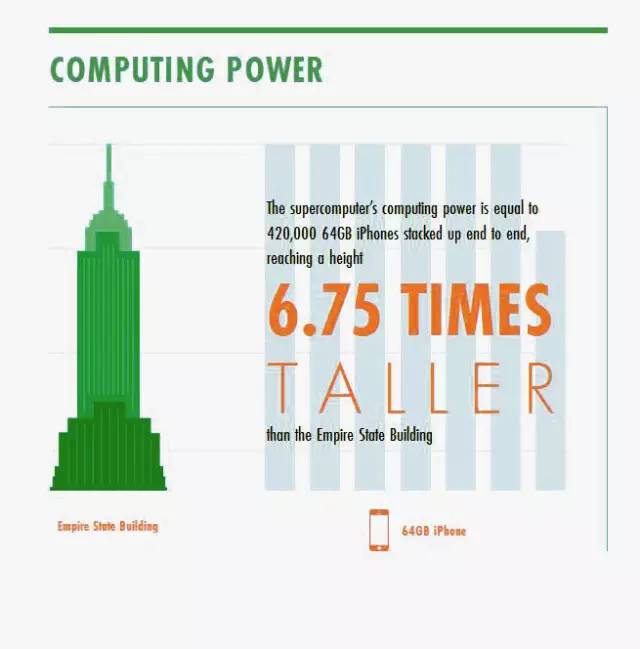 Apple处理器的好处众人皆知,而超级计算机的计算能力相当于420,000部64 GB的iPhone。如果把这些手机叠放在一起,能比帝国大厦高出6.75倍。