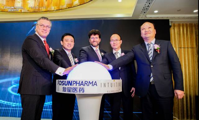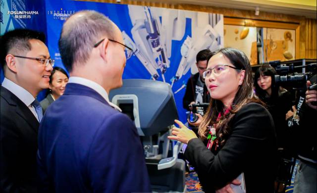 2016年12月10日上午,“复星医药与美国直观医疗器械公司(Intuitive Surgical, Inc.)战略合作新闻发布会暨人工智能辅助精准医疗高峰论坛”在上海瑞金宾馆举行。上海市卫生和计划生育委员会党委书记黄红、上海市食品药品监督管理局副局长徐徕、中国医学装备协会理事长赵自林、上海药学会理事长王龙兴,复星集团董事长、复星医药非执行董事郭广昌出席并共同见证,复星医药董事长陈启宇和美国直观医疗器械公司总裁兼首席执行官Gary Guthart博士现场宣布正式启动双方在中国的战略合作。双方将共同注资1亿美元在上海成立合资企业,主要研发、生产和销售针对肺癌的早期诊断及治疗的基于机器人辅助导管技术的创新产品。这是全球机器人辅助微创手术的领导者美国直观医疗器械公司除达芬奇手术系统产品外的又一创新产品线布局。