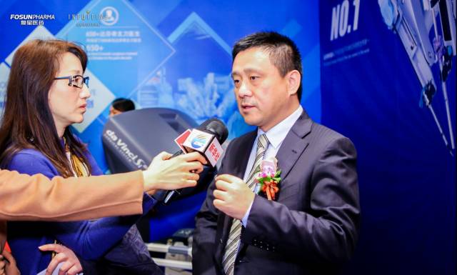 郭广昌董事长在现场观摩体验达芬奇机器人